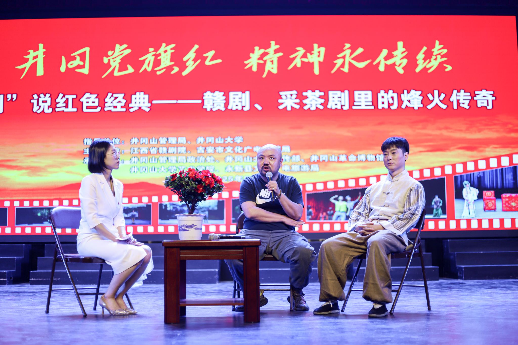本次活动由江西省赣剧院、吉安市文广旅局主办,井冈山管理局政治处、井冈山革命博物馆、我校党委宣传部、我校艺术学院共同承办。校党委副书记、校长罗旭彪会见演职人员,校党委副书记肖宜安,井冈山管理局党工委副书记李莹出席活动,吉安市文化广电旅游局、吉安市文联、井冈山管理局、井冈山革命博物馆相关负责人参加,我校师生代表300余人参加活动。