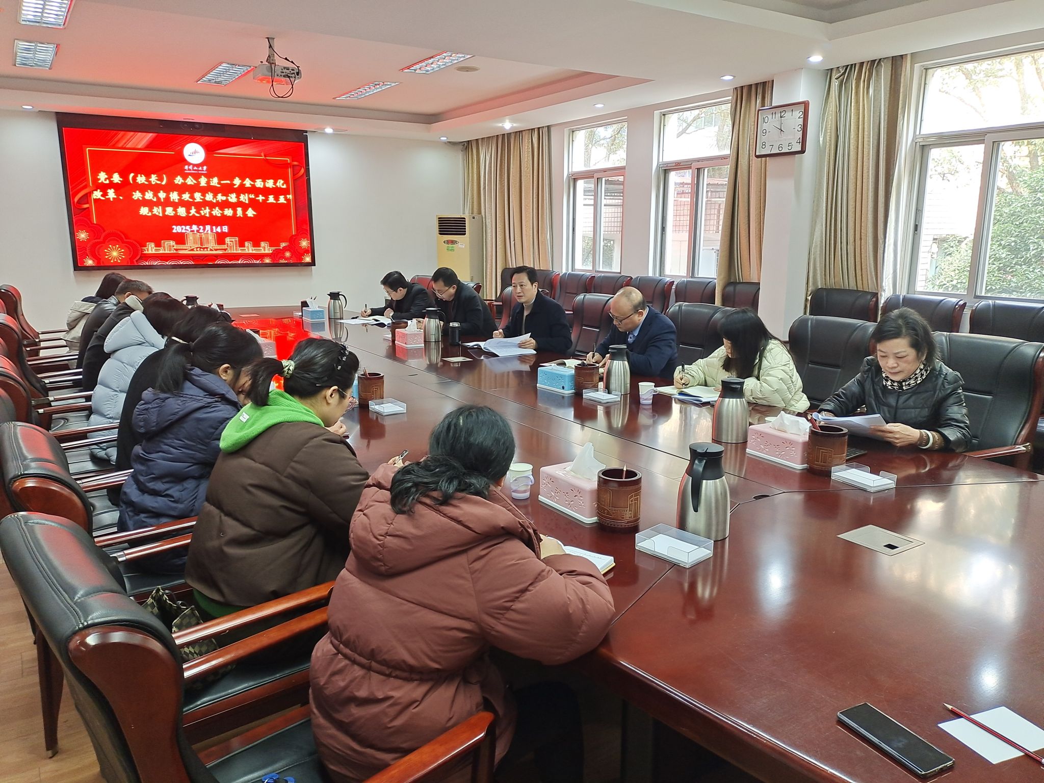 2月14日上午,党委(校长)办公室召开了“进一步全面深化改革、突围破局决战申博攻坚和谋划“十五五”规划解放思想大讨论”动员会。党委(校长)办公室主任王剑主持并讲话,办公室、档案馆全体人员参加。