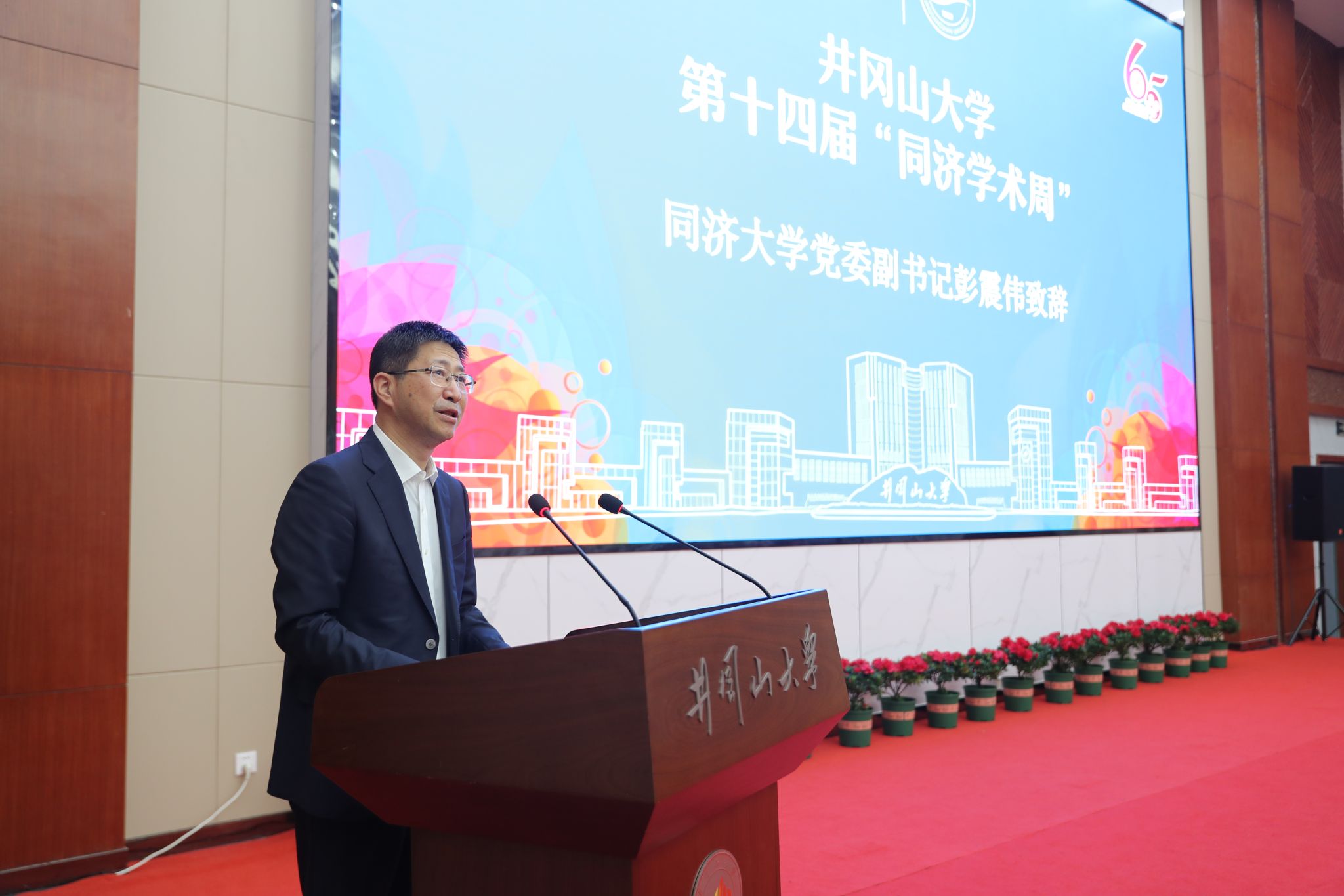 10月27日,井冈山大学第十四届“同济学术周”开幕式举行,本届学术周主题为“破瓶颈、强能力,开拓井冈山大学高质量发展新局面”。同济大学党委副书记彭震伟、井冈山大学党委书记胡春晓分别致辞,井冈山大学党委副书记、校长罗旭彪主持,井冈山大学全体在家校领导、各单位及学院主要负责人和部分教师代表,同济大学校办、人事处相关负责人出席开幕式。