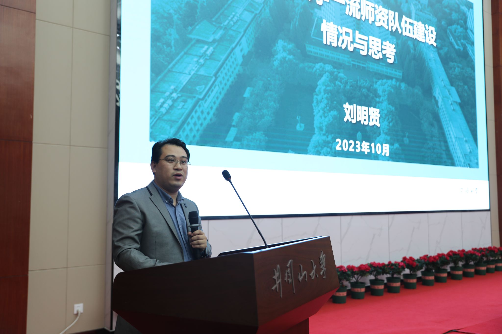 开幕式后,同济大学刘明贤教授作《同济大学一流师资队伍建设情况与思考》的主题报告,重点介绍了同济大学建设一流师资队伍的先进理念和经验做法,为我校科学研究发展、高层次人才队伍建设和高质量内涵式发展提供了参考和借鉴。